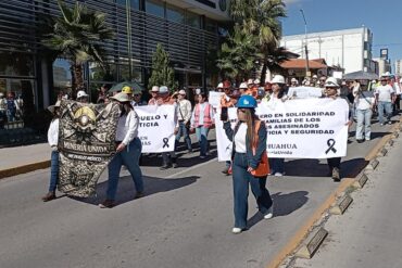 Chihuahua, Chih.- Trabajadores del sector minero salieron a las calles de la capital este sábado para rendir homenaje a los cinco compañeros que fueron encontrados ...