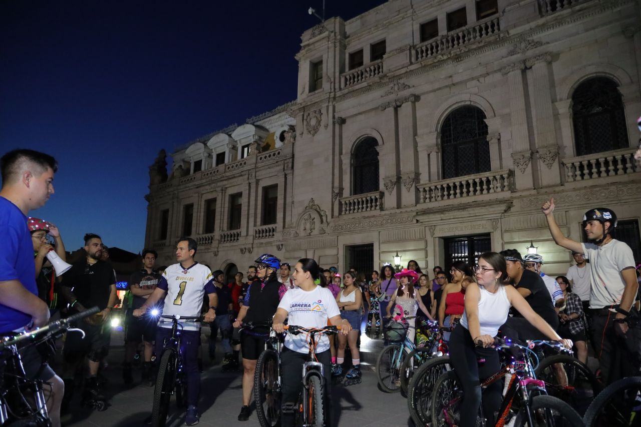Chihuahua.- La noche de este viernes, el alcalde Marco Bonilla acompañó a integrantes de la agrupación Kings of Wheels Cuu, a una rodada nocturna que inició en Plaza de Armas, para seguir por toda la calle Juan Aldama hasta la Colón y de ahí seguir hasta la avenida Universidad y Pascual Orozco.