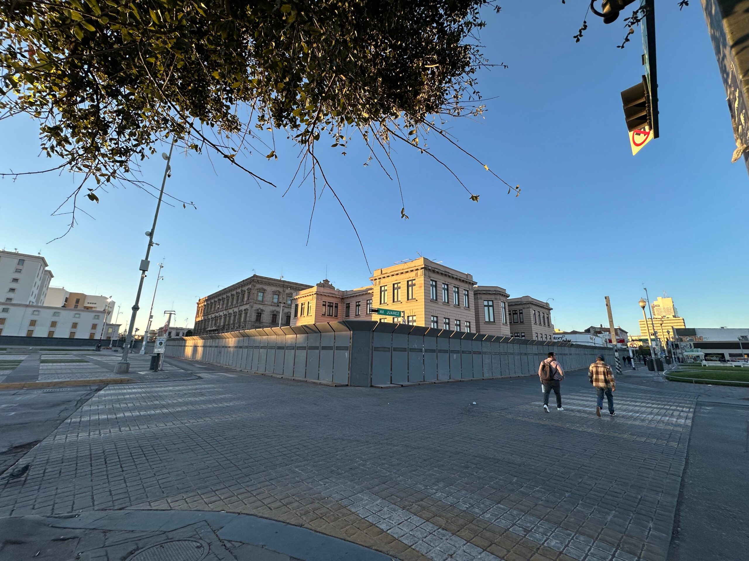 Chihuahua, Chih.- Desde las primeras horas de este día, cuadrillas de trabajadores comenzaron la instalación de vallas metálicas alrededor de diversos edificios gubernamentales y educativos en el Centro Histórico de Chihuahua, como medida preventiva ante las movilizaciones previstas para el próximo domingo 8 de marzo.