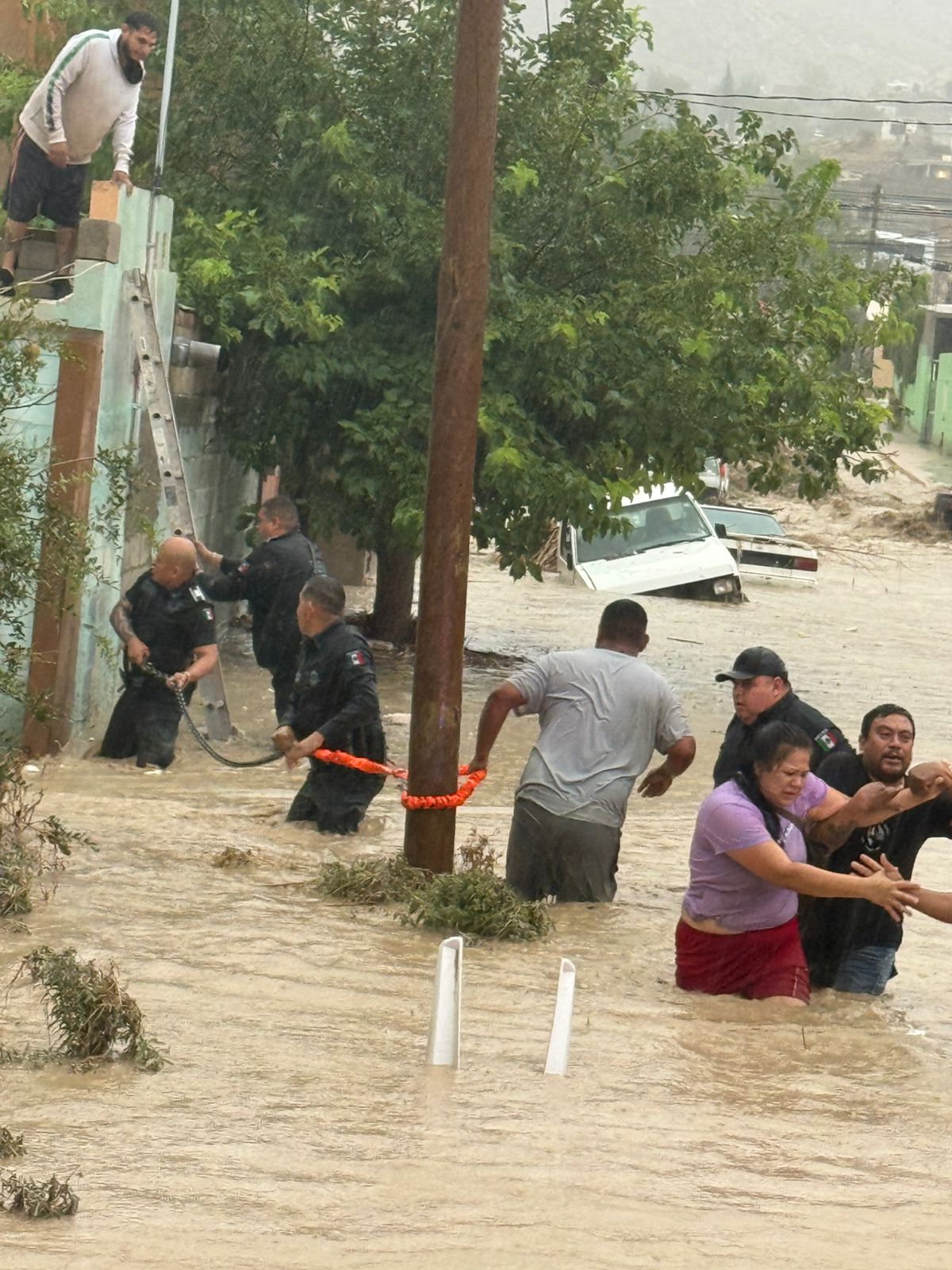Juárez.- Elementos de la Secretaría de Seguridad Pública Municipal adscritos a los diferentes Distritos policiales prestaron diversos apoyos ciudadanos debido a la contingencia que se ha presentado por las lluvias en las últimas horas, que ocasionaron acumulación de agua en la zona Norponiente de la Ciudad.