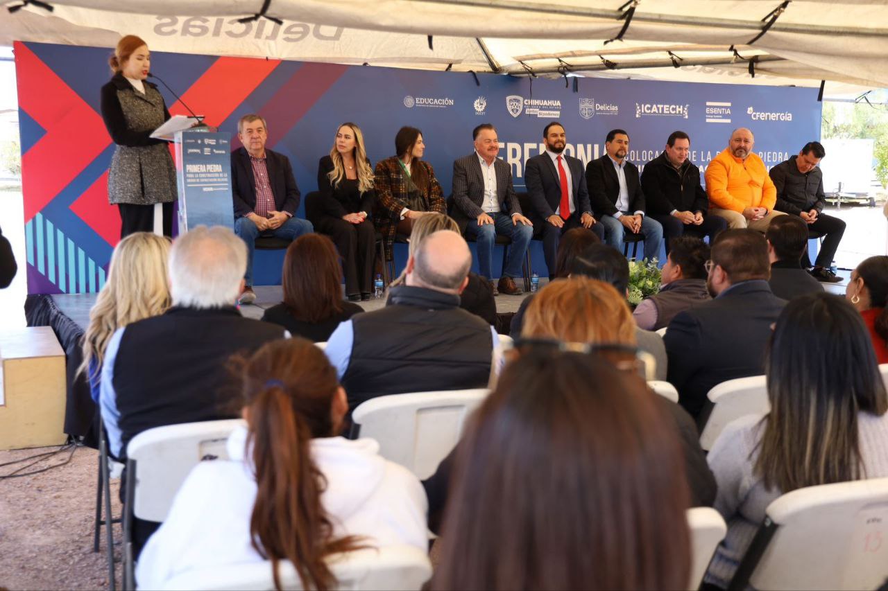 Delicias.- La empresa Esentia Energy Systems y el Instituto de Capacitación para el Trabajo (Icatech), realizaron la Ceremonia de Colocación de la Primera Piedra de la Unidad de Capacitación que será construida en el municipio de Delicias, para la cual se destinará una inversión de 456 mil dólares.