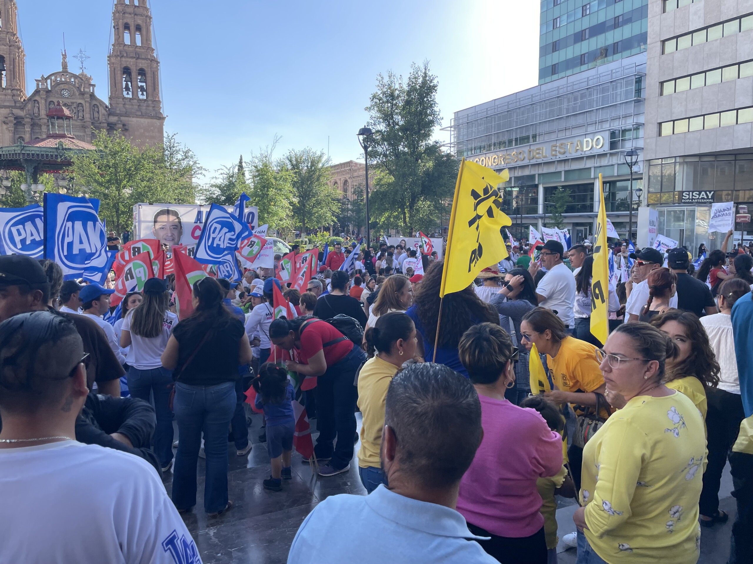 Es así que chihuahuenses se dieron cita en la principal plaza de la ciudad para mostrar su apoyo a los candidatos que representan a los tres partidos de la alianza.