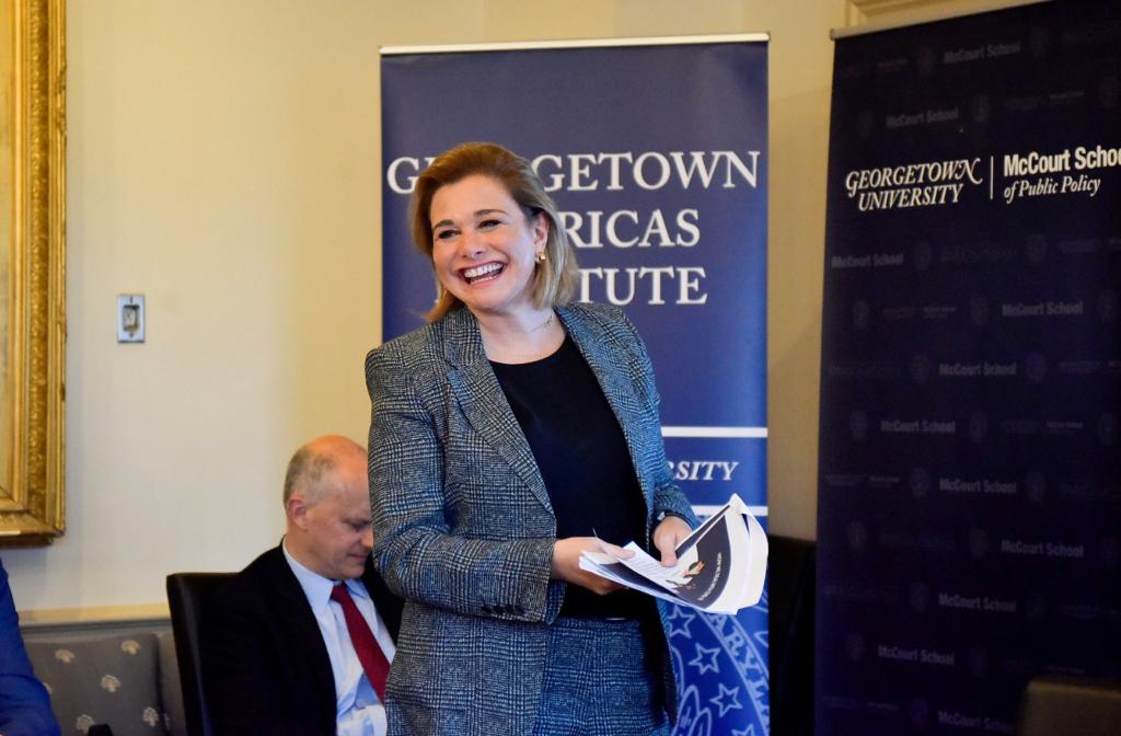 Washington D.C.- En seguimiento a su gira de trabajo en Washington, Estados Unidos para promover internacionalmente al Estado de Chihuahua, la Gobernadora ofreció una plática a estudiantes de la Universidad de Georgetown en la que puso en contexto al alumnado sobre la importancia de Chihuahua para Estados Unidos y su desarrollo económico. Durante su exposición, la Gobernadora estuvo acompañada por el rector de la Universidad y explicó el contexto político mexicano ...