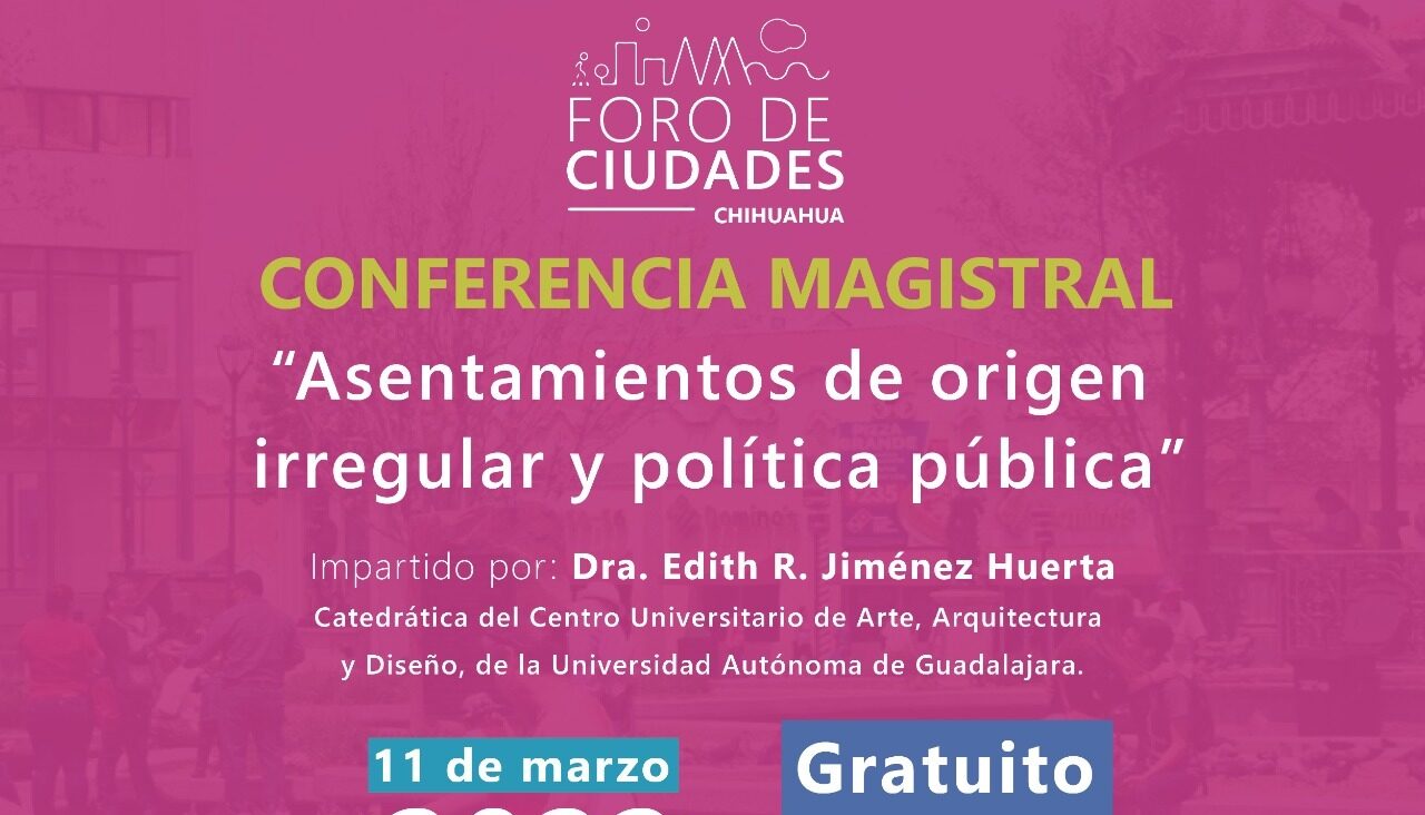 Chihuahua, Chih.- Con el objetivo de compartir experiencias sobre planeación urbana, particularmente a los asentamientos irregulares y la política pública en torno a ellos, el Instituto de Planeación Integral del Municipio de Chihuahua (IMPLAN) ofrece una conferencia magistral en modalidad virtual, a cargo de la experta en el tema, Dra. Edith R. Jiménez Huerta, quien es catedrática e investigadora de la Universidad de Guadalajara (UdeG). La cita es este viernes 11 ...