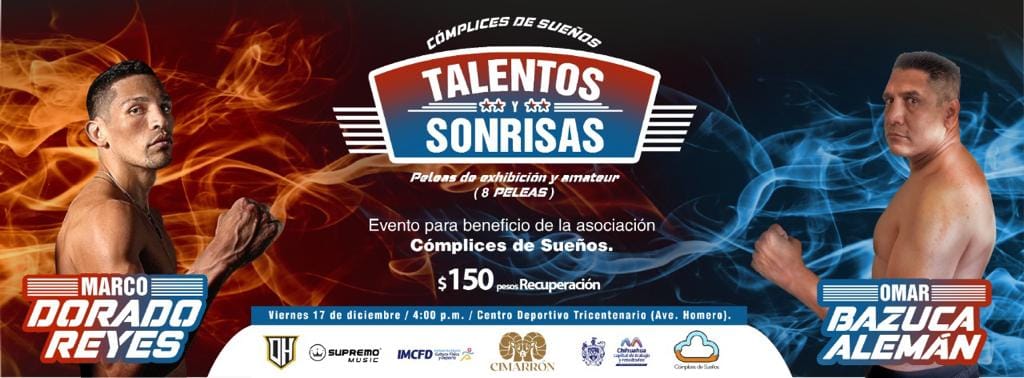 Leer másChihuahua.- Con la intención de apoyar a niños enfermos de cáncer en fase terminal esta tarde se realizará el evento de boxeo “Cómplices de sueños: talentos por sonrisas” a partir de las 5 de la tarde en el Gimnasio Tricentenario, en la avenida Homero, con un costo de 150 pesos. El espectáculo constará de 7 peleas con peladores profesionales y amateur: “es un entrenamiento pero adornado con los artistas invitados que ...