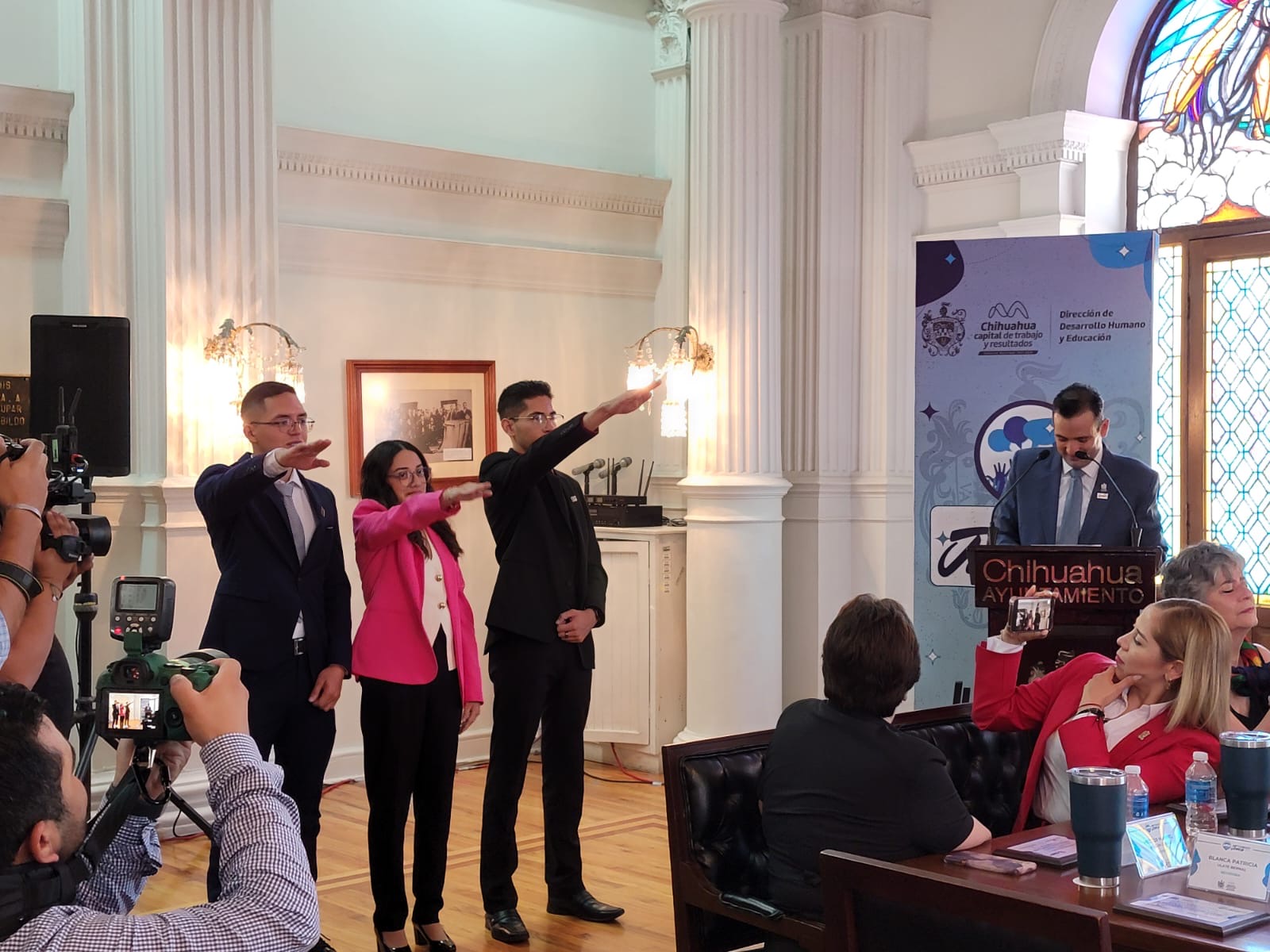 Leer másChihuahua.- El alcalde Marco Bonilla tomó protesta de los nuevos integrantes de Cabildo Joven 2024, programa que se ha desarrollado desde el 2016, con la finalidad de capacitar a las y los jóvenes en temas de liderazgo, comunicación marketing político, democracia, imagen pública, oratoria, además de dar a conocer las funciones, retos y experiencias del Honorable Cabildo. En total fueron recibidas 157 solicitudes de los interesados en formar parte de dicha ...