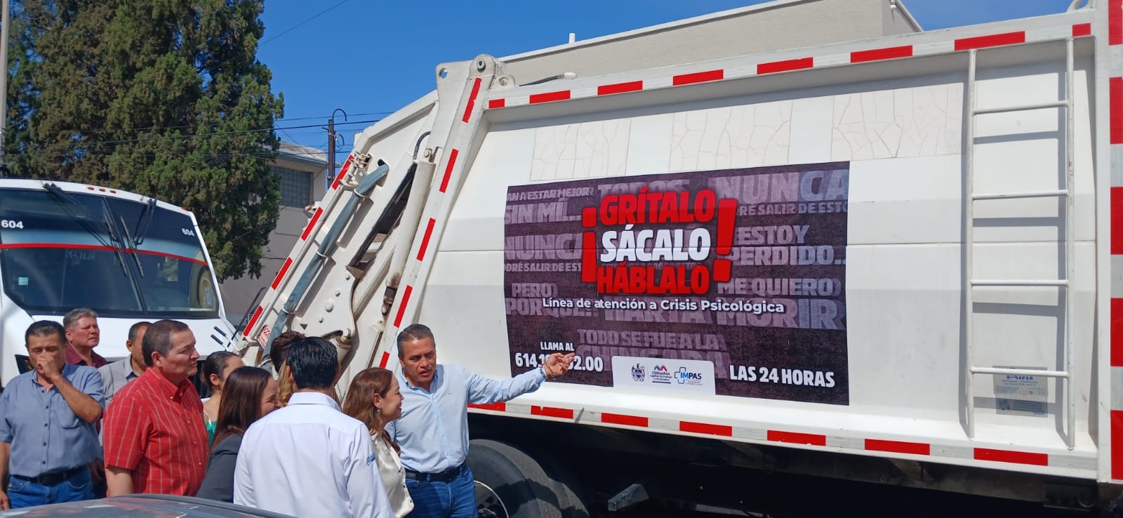 Leer másChihuahua.- Con la finalidad de dar a conocer y promover entre los chihuahuenses la línea de Atención a Crisis, autoridades municipales encabezaron el banderazo de inicio de la difusión en diferentes unidades de transporte público, así como en camiones recolectores de basura, que llevarán plasmado el QR que dará acceso a toda la información de la campaña “Grítalo, Sácalo, Háblalo”. A través de dichas acciones, se pretende disminuir los casos de ...