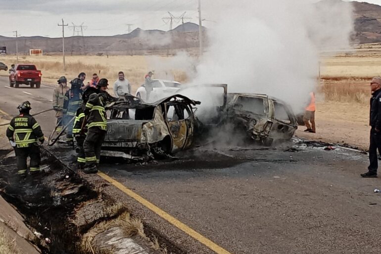Leer másUn fatal accidente se registró este domingo a la altura del kilómetro 29 en sentido de Cuauhtémoc a Chihuahua. Los vehículos involucrados quedaron completamente calcinados; de trata de un vehículo Cadillac y una camioneta Ford Explorer. Los fallecidos son dos personas que viajaban a bordo del Cadillac y una de la camioneta. Elementos del cuerpo bomberos llegaron al lugar apoyados por dos ambulancias de urge también están elementos de la Policía Municipal