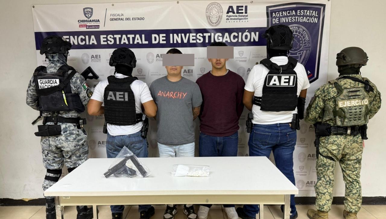 Leer másCiudad Juárez-. Elementos de la Agencia Estatal de Investigación, adscritos a la Fiscalía de Distrito Zona Norte, con la colaboración del Ejército Mexicano y la Guardia Nacional, detuvieron a quienes se identificaron como David A. S., y Sebastián C. A., por delitos contra la salud y posesión ilegal de arma de fuego. La detención en flagrancia de los masculinos de 23 años y 20 años de edad, se realizó ayer viernes, ...