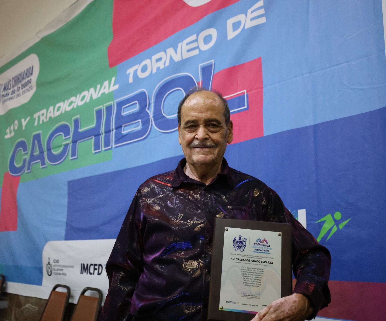 Chihuahua.- Por sus cerca de 30 años de promotoría deportiva, el Gobierno Municipal de Chihuahua a través del Instituto Municipal de Cultura Física y Deporte (IMCFD) entregó un reconocimiento por trayectoria al profesor Salvador Pando Esparza, impulsor del cachibol a nivel nacional. En el marco de la edición número 11 del Torneo Nacional de Cachibol que se celebró del 26 al 29 de agosto en Chihuahua capital, ante decenas de jugadores ...