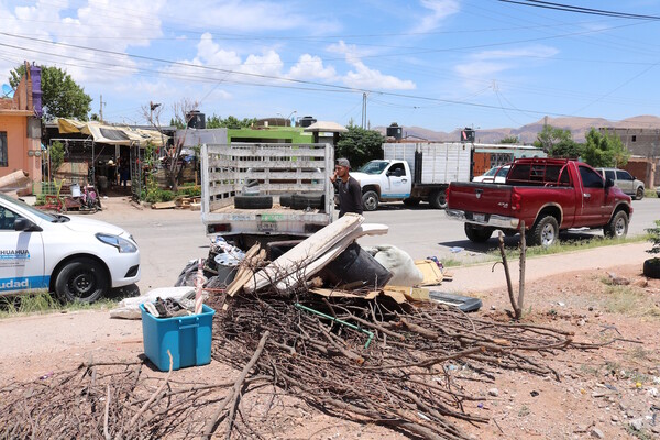 Leer másCerca de 3 toneladas de basura, escombro, llantas, restos de madera y residuos diversos sacaron de una vivienda ubicada en la colonia Sahuaros en la calle Desierto de Mohave, donde participaron empleados del Gobierno Municipal. Las labores se realizaron en la vivienda de un adulto mayor, cuyos vecinos y familiares pidieron apoyo debido a que esta persona padece una afección de salud; Ricardo Martínez García, director de Servicios Públicos Municipales indicó ...