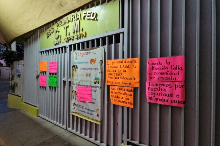 Leer másChihuahua.- Docentes y personal administrativo de la escuela primaria federal C. T. M, ubicada en las calles Arturo de Córdova y Agustín Lara, en el fraccionamiento Lourdes, se manifestaron la mañana de este jueves 8 de enero para exigir la destitución de la directora Carmen Mariana Valenzuela González. Lo anterior debido a que la acusan de abuso de autoridad, hostigamiento laboral, trato indigno, e inclusive, malos manejos con el recurso del ...