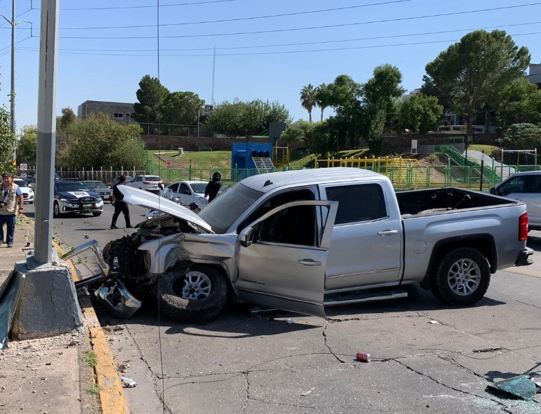 Leer másChihuahua.- Caos vehicular dejó un aparatoso accidente y cuantiosos daños materiales en la vía pública luego de que el conductor de una pickup, GMC Sierra, de reciente modelo, perdiera el control del volante en una de las curvas de la avenida la Cantera, en su cruce con la calle Adolfo de la Huerta. Debido al fuerte impacto, la unidad terminó por derribar dos árboles y dos luminarias, a pesar de lo ...