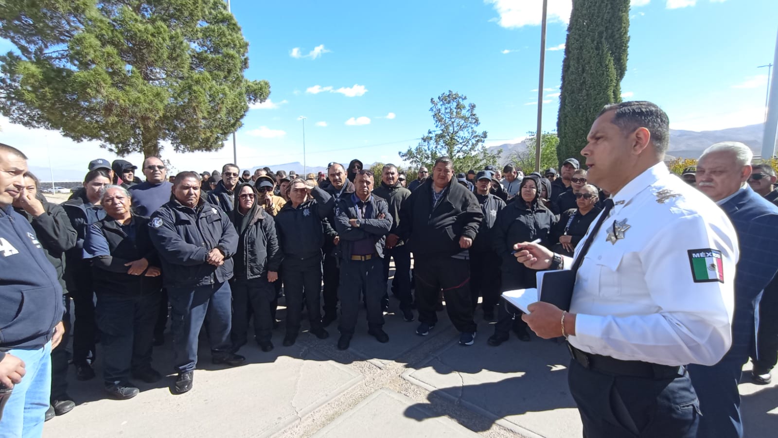Leer másChihuahua.- El Secretario de Seguridad Pública Estatal, Gilberto Loya Chávez, atendió a los celadores que se manifestaron desde esta mañana al interior del Cereso 1 de Aquiles Serdán. El titular de la SSPE escuchó atento a sus demandas indicando que serían atendidas uno por uno y llegar a una solución. En atención a las demandas, se acordó que se instalará una comisión que se revisara cada quince días son: el pago de ...