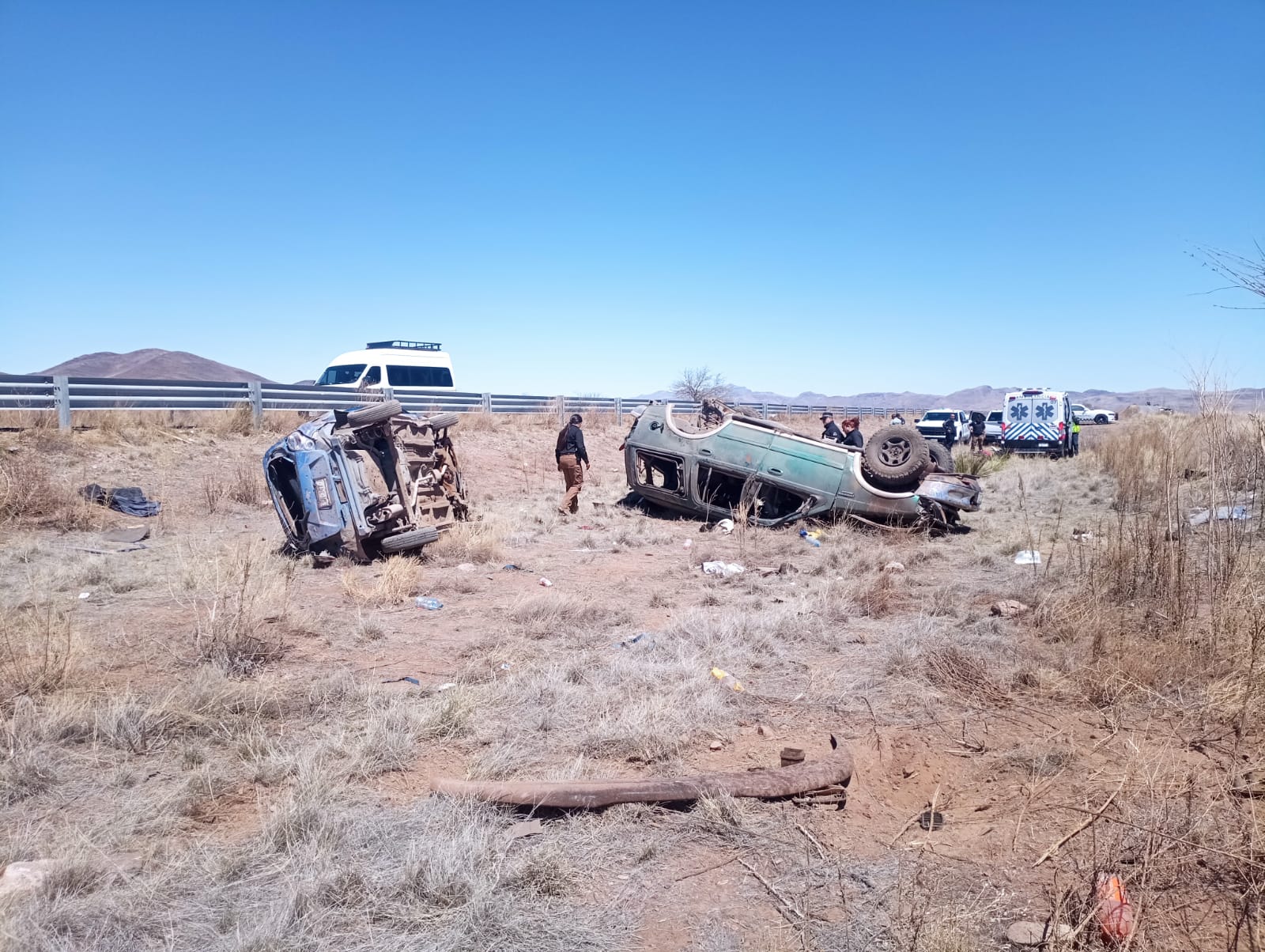 Leer másChihuahua.- En el kilómetro 120 de la carretera a Ciudad Juárez, justo en el entronque a Casas Grandes, ocurrió un aparatoso choque con volcadura de dos vehículos, dejando como resultados 4 adultos, 2 menores con lesiones leves y uno más con lesiones de consideración, todos ellos migrantes ecuatorianos. Los primeros lesionados fueron trasladados en ambulancia de Cruz Roja y Ángeles Blancos a hospitales en la capital, en tanto la persona con ...