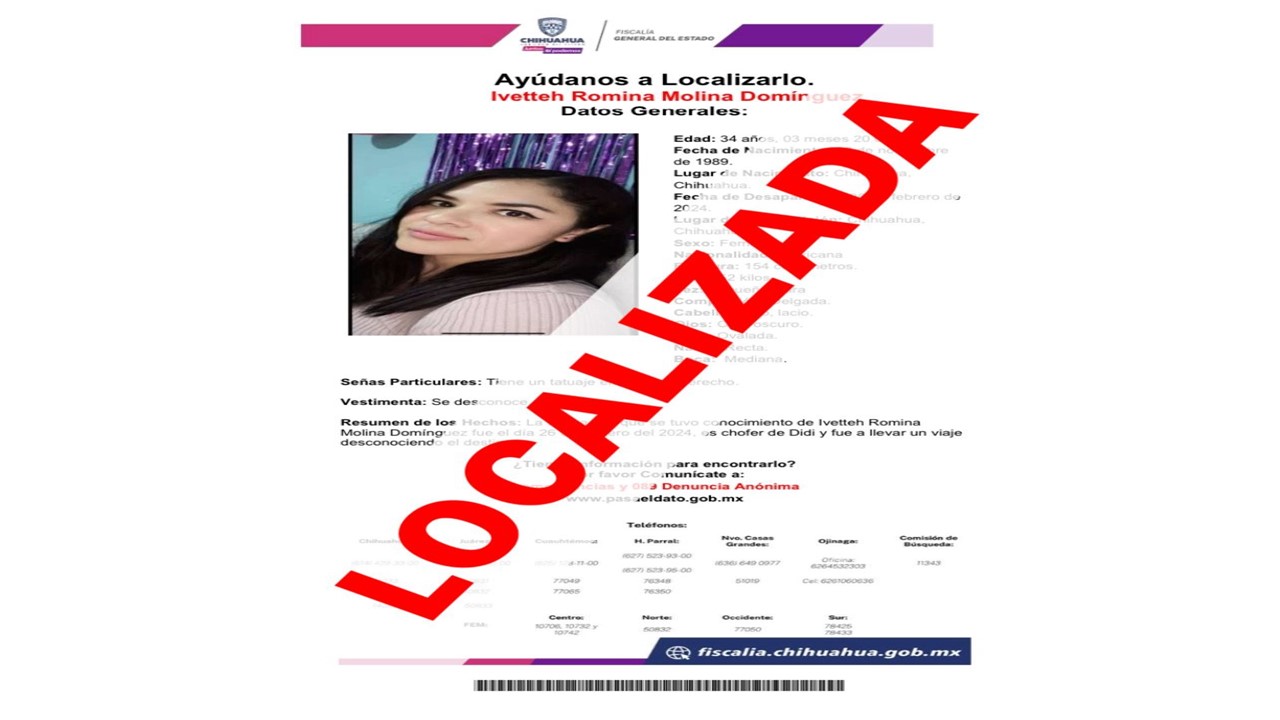 Leer másChihuahua.- Luego de varias horas de búsqueda elementos de la Policía Estatal y ministerial localizaron a la chofer de Didi, Romina, en Ciudad Cuauhtémoc, afortunadamente con vida. Tras darse a conocer su desaparición por parte de familiares y compañeros al no saber nada de ella en un viaje de una pareja que recogió en las inmediaciones de la Colonia Villa Juárez ayer por la noche y su última conexión fue cerca ...
