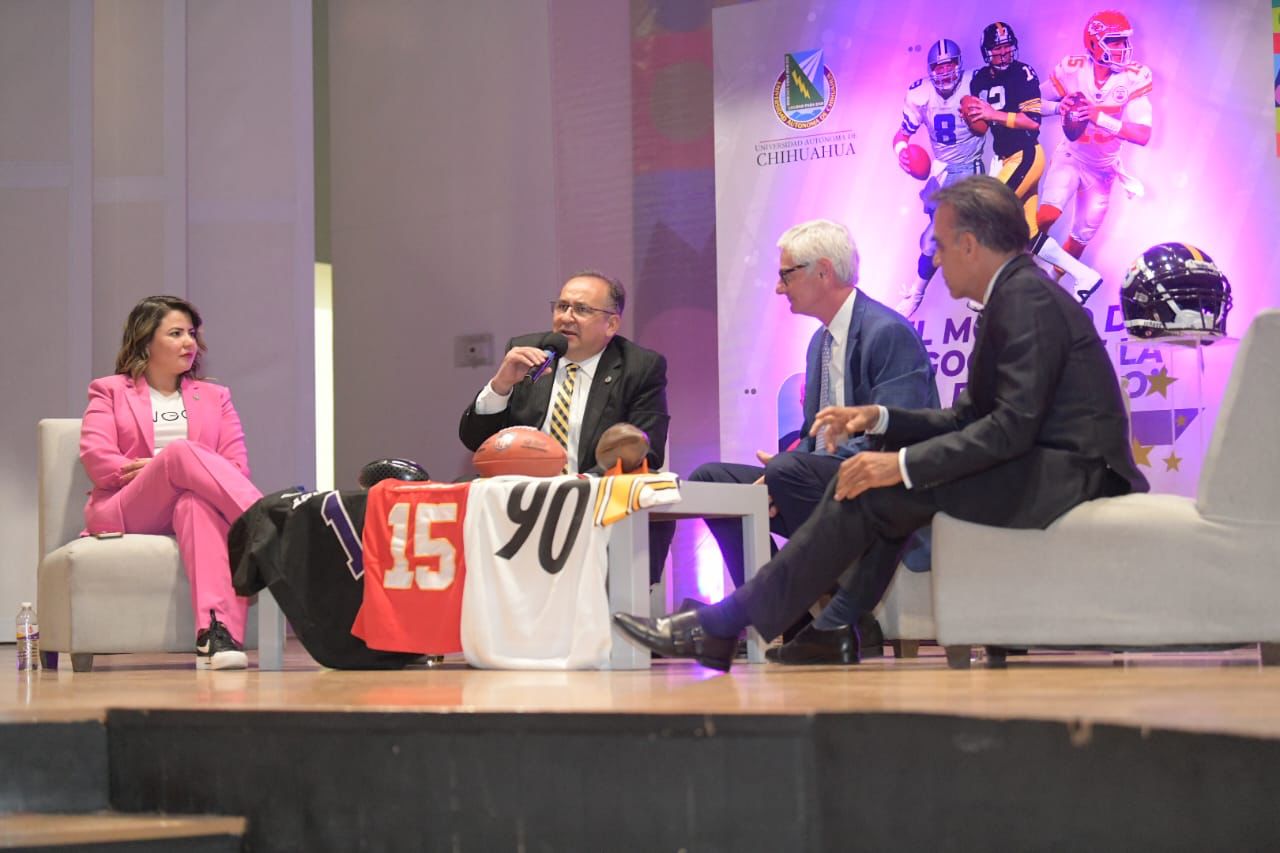 Leer másChihuahua.- Con el objetivo de reforzar la pasión por el deporte en las y los universitarios, en la UACH se presentó la conferencia "El Modelo de Negocios de la NFL en México" impartida por Arturo Olivé, director de la NFL en este país. Durante la presentación, el maestro Luis Rivera Campos, rector de la UACH y Steeler de corazón les dió la bienvenida al director de la liga NFL, así como ...