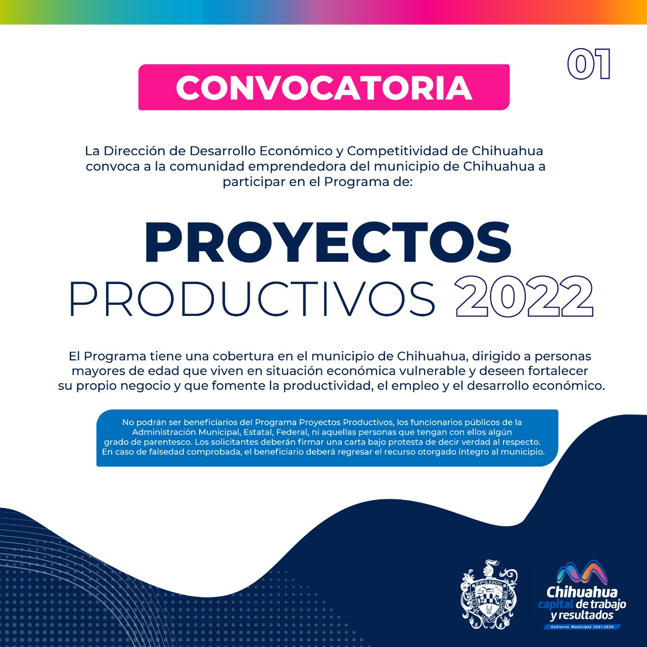 Leer másEl Gobierno Municipal a través de la Dirección de Desarrollo Económico y Competitividad, invita a las y los emprendedores de Chihuahua Capital a participar en el programa “Proyectos Productivos 2022” que entregará hasta 25 mil pesos a comerciantes para la compra de mobiliario, equipo y maquinaria menor, necesarios para la actividad diaria. Este programa no aplica para la compra de mercancía, inventario, ni tecnología. Los interesados deberán llevar a las oficinas ...