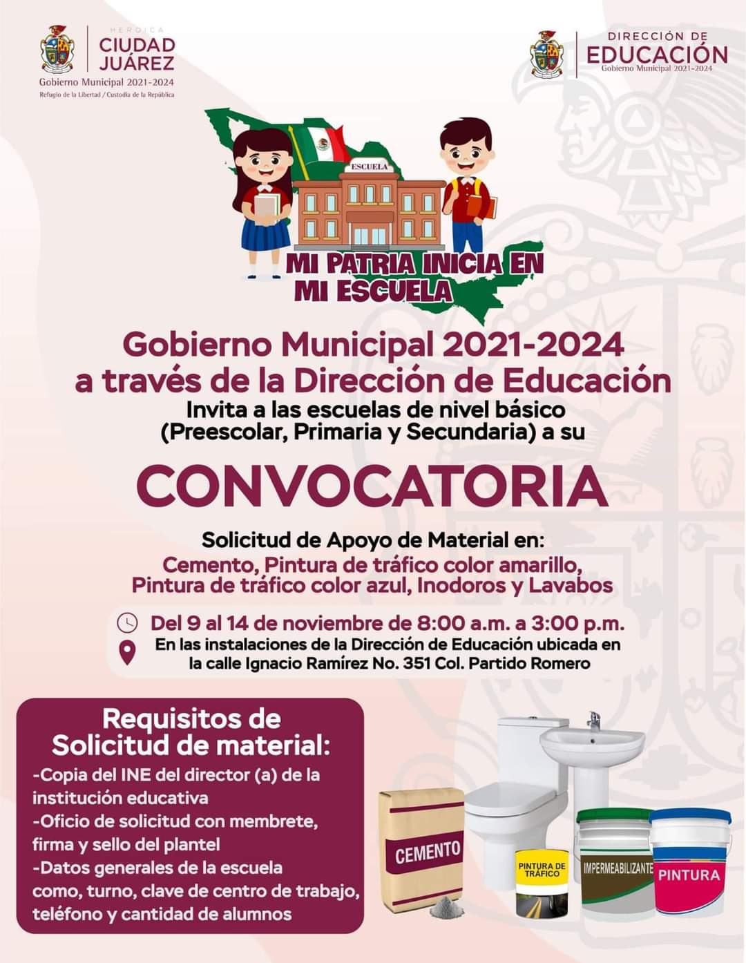 Leer másJuárez.- La Dirección de Educación Municipal invita a las instituciones educativas de nivel básico a participar en la convocatoria para apoyarlos con materiales, ya que mañana es el último día para recibir las peticiones. Martha Aracely González Holguín, titular de la dependencia, informó que la invitación va dirigida a escuelas públicas de preescolar, primaria y secundaria que requieren material para mejora de sus instalaciones. Dijo que el Gobierno Municipal se ha preocupado ...