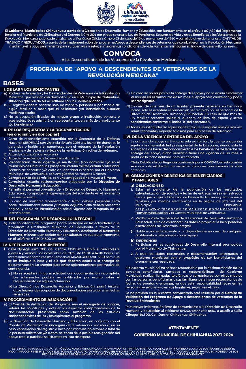 Leer másChihuahua.- El Gobierno Municipal, a través de la Dirección de Desarrollo Humano y Educación, refrendó el programa de apoyo e invita a descendientes de veteranos de la Revolución a participar en la convocatoria. “Apoyo a Descendientes de Veteranos de la Revolución”, es un programa iniciado por la administración pasada, con la finalidad de mejorar las condiciones de vida y contribuir a los ingresos de quienes tienen un parentesco legítimo con aquellas ...
