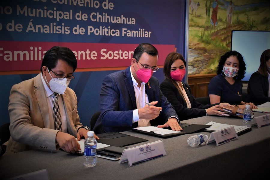Chihuahua.- Hoy se llevó a cabo la firma de convenio entre el Instituto de Análisis de Política Familiar y el Gobierno Municipal de Chihuahua “Ciudades familiarmente sostenibles”, en el salón Consistorial de la Presidencia Municipal. Juan Antonio López Baljarg, director de IAPF y Marco Bonilla alcalde de Chihuahua, firmaron el convenio de colaboración antes mencionado con el cual el Ayuntamiento se compromete a implementar políticas que favorezcan a la familia en ...