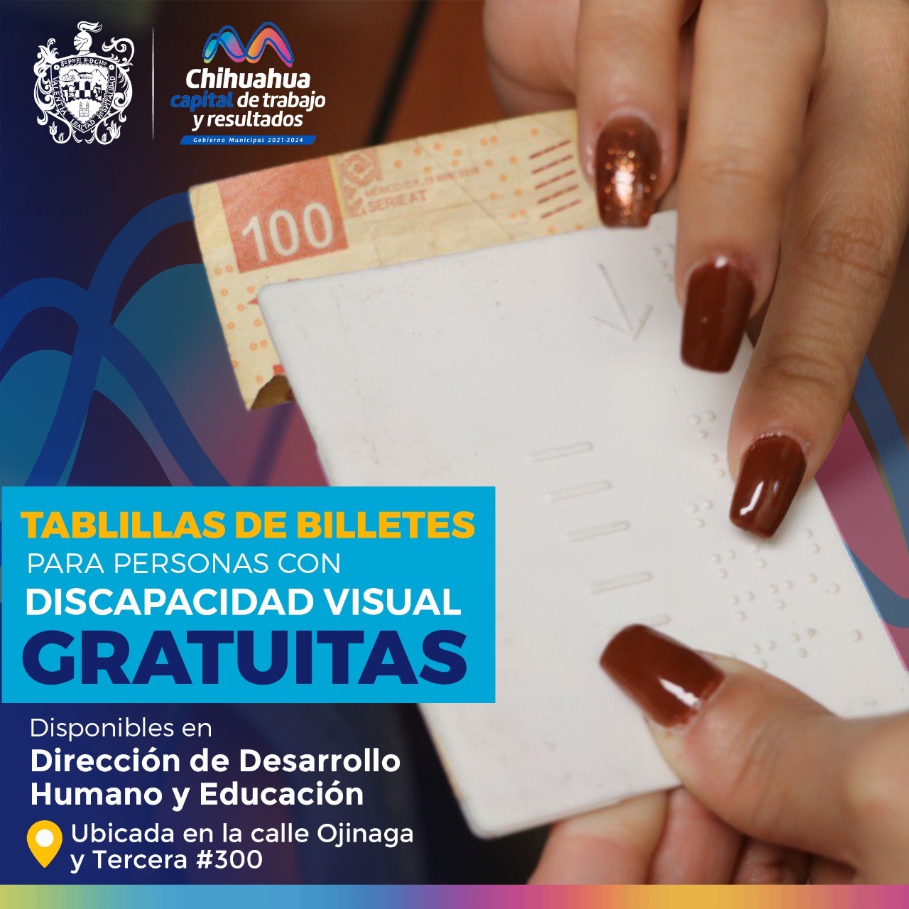 Leer másChihuahua.- El Gobierno Municipal a través de la Dirección de Desarrollo Humano y Educación dará tablillas de billetes para quienes sufren de ceguera o discapacidad visual en el marco de la celebración del Día Internacional del Bastón Blanco, dedicado a la concientización y sensibilización sobre la discapacidad visual, para contribuir a una verdadera inclusión de las personas invidentes o con baja visión y mejorar su calidad de vida. Estos dispositivos se ...