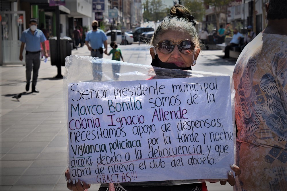Leer másChihuahua.- Adultos mayores de la colonia Ignacio Allende, ubicada al norte de la ciudad, piden al Ayuntamiento, en concreto al alcalde Marco Bonilla, que se reabra el Club del Abuelo y mayor vigilancia policial, además de apoyos alimenticios. Doña Armida Jacobo Ramírez, vecina de la mencionada colonia, con una cartulina bien aislada con hule en la que enarbolaba sus demandas, acudió a las audiencias ciudadanas de este miércoles en la Plaza ...