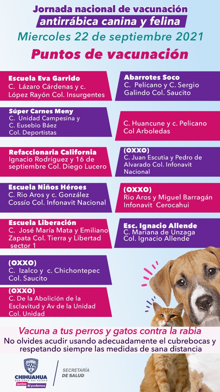 Leer másChihuahua.- La Secretaría de Salud del Estado exhorta a la población a vacunar contra esta enfermedad infecciosa a perros y gatos, que deben ser mayores a 2 meses y no poseer signos de otro padecimiento La Secretaría de Salud del Estado de Chihuahua invita a la ciudadanía a proteger a las mascotas contra la rabia e informa los puntos a los que las personas que tienen perros y/o gatos pueden acudir ...