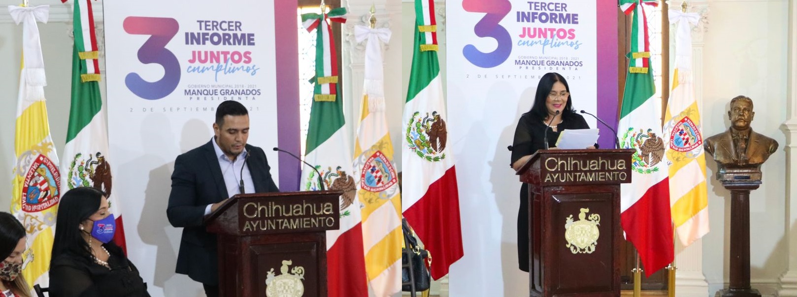 Leer másChihuahua. – La discrecionalidad a la hora de ejercer recursos públicos, provenientes de la recaudación de impuestos, fue lo señalado por las fracciones edilicias del Partido del trabajo y de MORENA, durante el tercer informe de la administración 2018-2021, en voz de sus representantes en el cabildo de Chihuahua, los regidores Nijta Leal y Rubén Castañeda. “… al menos en el ejercicio de los recursos públicos, de 400 millones de pesos, ...