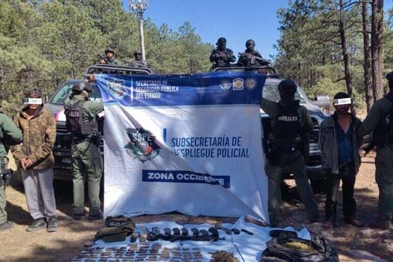 Leer másGuadalupe y Calvo, Chih.- Elementos de la Policía de Despliegue de la Secretaría de Seguridad Pública del Estado (SSPE) detuvieron a cuatro personas en posesión de armamento, cartuchos y equipo táctico, como parte de los operativos permanentes en el municipio de Guadalupe y Calvo. La intervención se registró la tarde del miércoles en la zona de Puerto de Ojuelos, donde los agentes detectaron una camioneta Chevrolet Silverado con varios ocupantes que ...