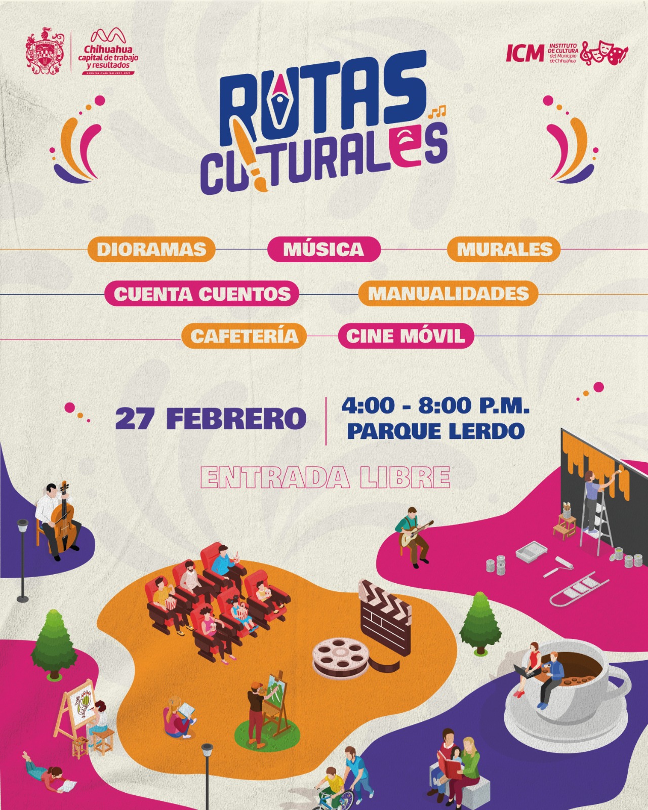 Leer másChihuahua, Chih.- Con el objetivo de llevar la cultura a distintos puntos de la ciudad y aprovechar los espacios públicos como foros de expresión, el Gobierno Municipal y el Instituto de Cultura, invitan al programa Rutas Culturales, que inicia el 27 de febrero a las 16:00 horas en el Parque Lerdo. Rutas Culturales es una serie de eventos que se realizarán en diversas zonas de la ciudad, promoviendo el acceso a ...