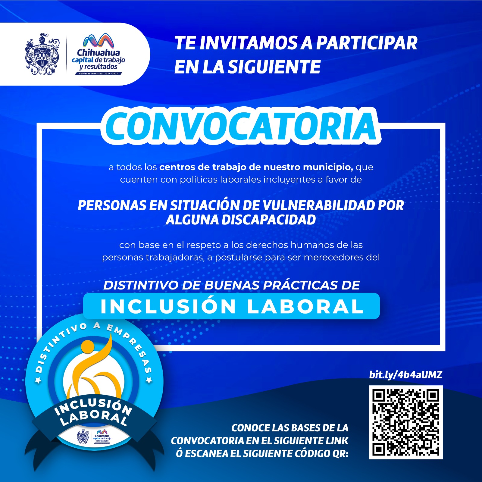 Leer másChihuahua, Chih.- El Gobierno Municipal, invita a empresas que cuenten con políticas que promuevan la inclusión a personas con discapacidad, a participar para obtener el "Distintivo de Buenas Prácticas de Inclusión Laboral”. Podrán participar todos los centros de trabajo de cualquier sector y actividad económica que tengan su sede en Chihuahua Capital. Las empresas aspirantes, con hasta cien personas contratadas, deberán contar con al menos cinco por ciento de personas trabajadoras ...