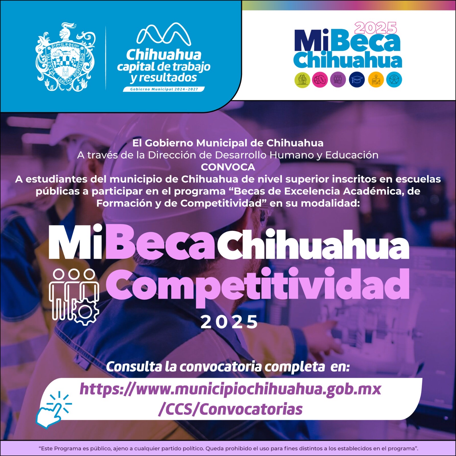 Leer másChihuahua, Chih.- El Gobierno Municipal de Chihuahua a través de la Dirección de Desarrollo Humano y Educación en conjunto con el Instituto de Cultura Física y Deporte, invita a la ciudadanía a conocer y ser parte de los programas “Mi Beca Chihuahua” en sus modalidades de Deporte y Competitividad. Las convocatorias completas de ambas becas ya se encuentran disponibles en el apartado de “Convocatorias” del portal web del Gobierno Municipal: https://www.municipiochihuahua.gob.mx/CCS/Convocatorias Dichas ...