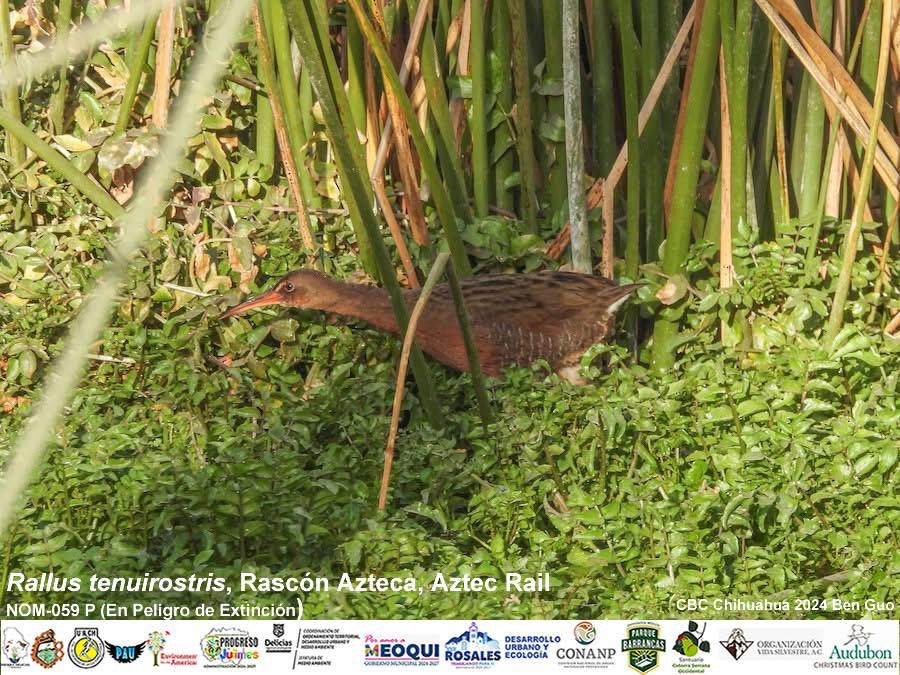 Meoqui, Chih.- Durante el tradicional Conteo Internacional Navideño de Aves, Audubon, Chihuahua 2024, realizado en el Humedal Rio San Pedro de Meoqui, se logró el avistamiento de tres ejemplares del Rascón Azteca, ave en peligro de extinción, la cual no se había reportado desde el mes de octubre dentro del municipio, encontrando además crías de esta especie; por otra parte, en el Vado de Meoqui, se observo un Chipe Pecho ...