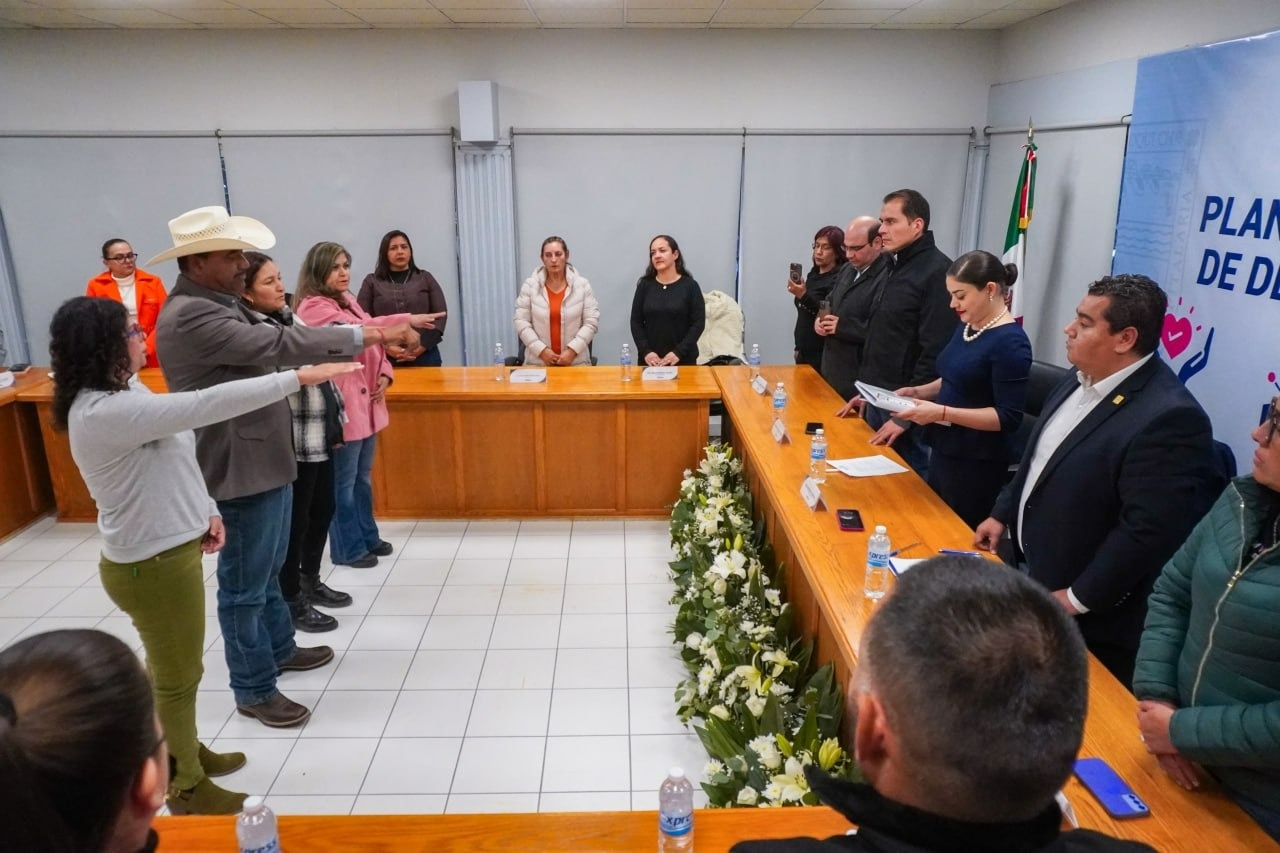 Leer másMeoqui, Chih.- Durante Sesión Extraordinaria de Cabildo del H. Ayuntamiento de Meoqui, la alcaldesa Miriam Soto tomó protesta como presidentes seccionales electos a Héctor Gallardo Carrera y Juan Pedro Trejo Chaparro, de Guadalupe Victoria y Lázaro Cárdenas respectivamente, para el periodo 2024 – 2027, quienes iniciarán su cargo este próximo 15 de diciembre. “Para nosotros es de suma relevancia trabajar de la mano con los seccionales y comunidades para realizar Obra ...