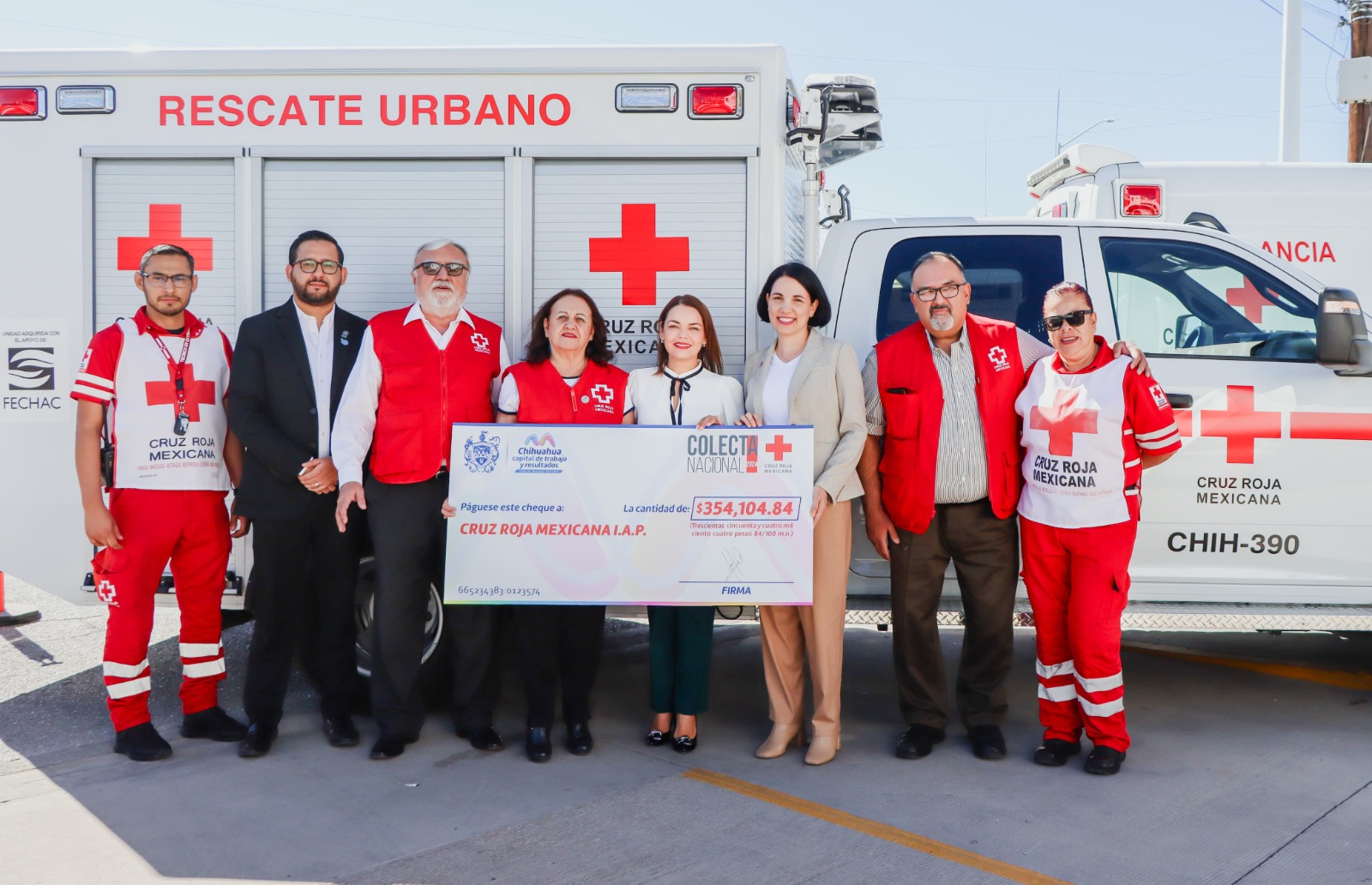 Leer másChihuahua, Chih.- El Gobierno Municipal, a través del DIF, realizó la entrega simbólica de un cheque de 354 mil 104 pesos, a la Cruz Roja Mexicana Delegación Chihuahua, con motivo de la colecta anual 2024, por parte de las y los colaboradores del Gobierno Municipal, cuyo monto servirá para que la noble institución continúe prestando auxilio a todas las personas que así lo requieran.