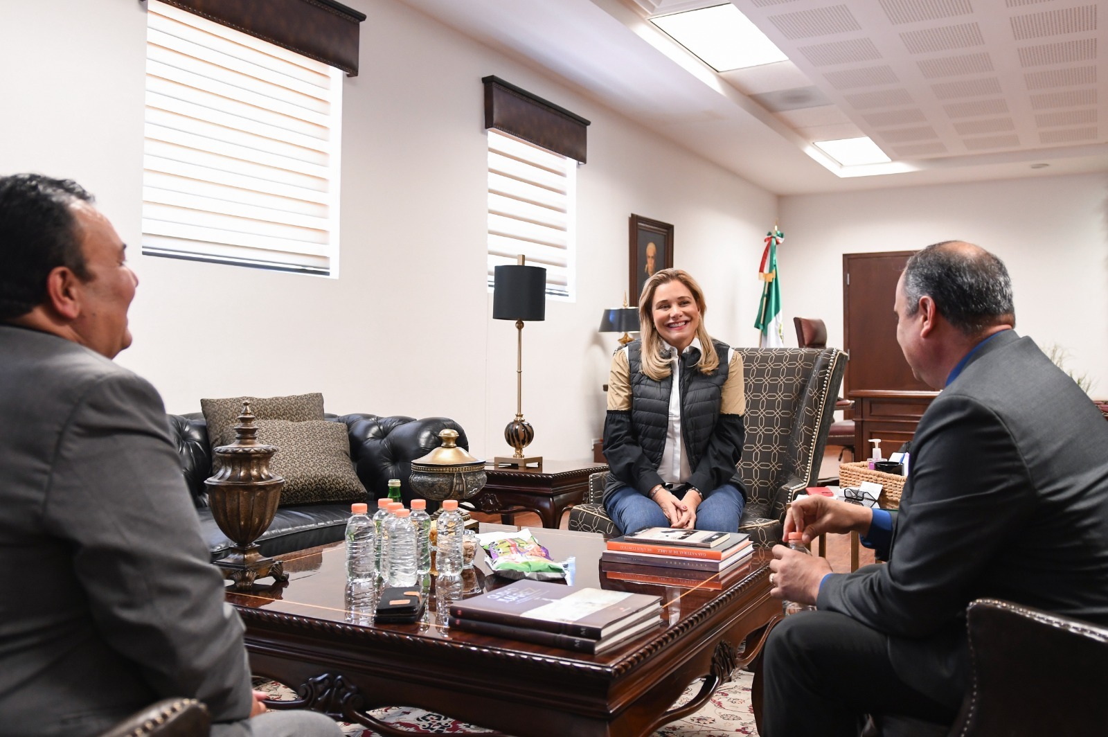 Ciudad Juárez.- La Gobernadora del Estado recibió en visita de cortesía, al presidente del Consejo de la Asociación de la Industria Maquiladora y Manufacturera de Exportación (Index), de Ciudad Juárez, Sergio Colín Chávez. En el encuentro, que se celebró en las oficinas de la Unidad Administrativa del Gobierno del Estado, conocidas como "El Pueblito Mexicano", participó además el director ejecutivo del organismo, Martín Flores Durán, con los cuales, abordó temas relacionados ...