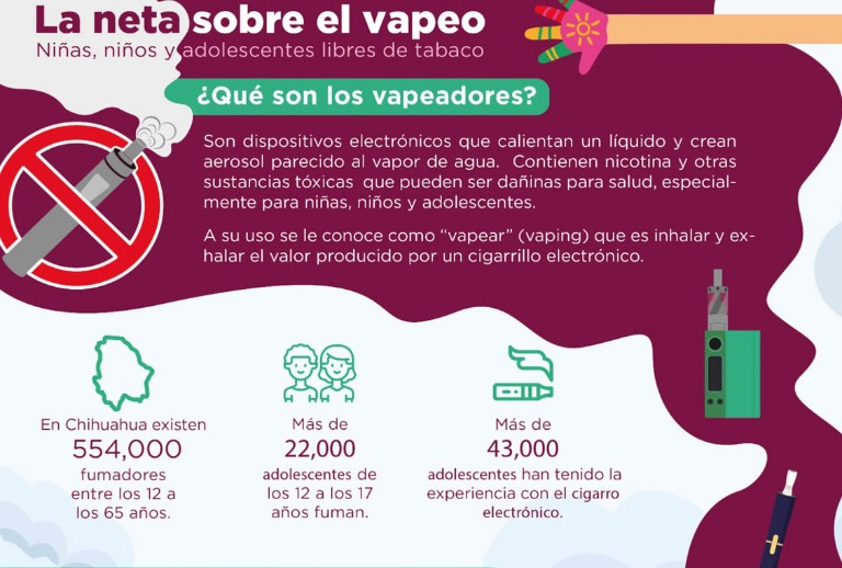 Leer másCiudad Juárez.- De acuerdo con la dependencia, en el estado de Chihuahua existen 554 mil fumadores entre los 12 a los 65 años; más de 22 mil adolescentes de 12 a 17 años fuman y más de 43 mil adolescentes han tenido experiencia con el cigarro electrónico. Personal del SIPINNA señaló que la nicotina no es segura para los niños y adolescentes, ya que el cerebro se sigue desarrollando hasta los ...