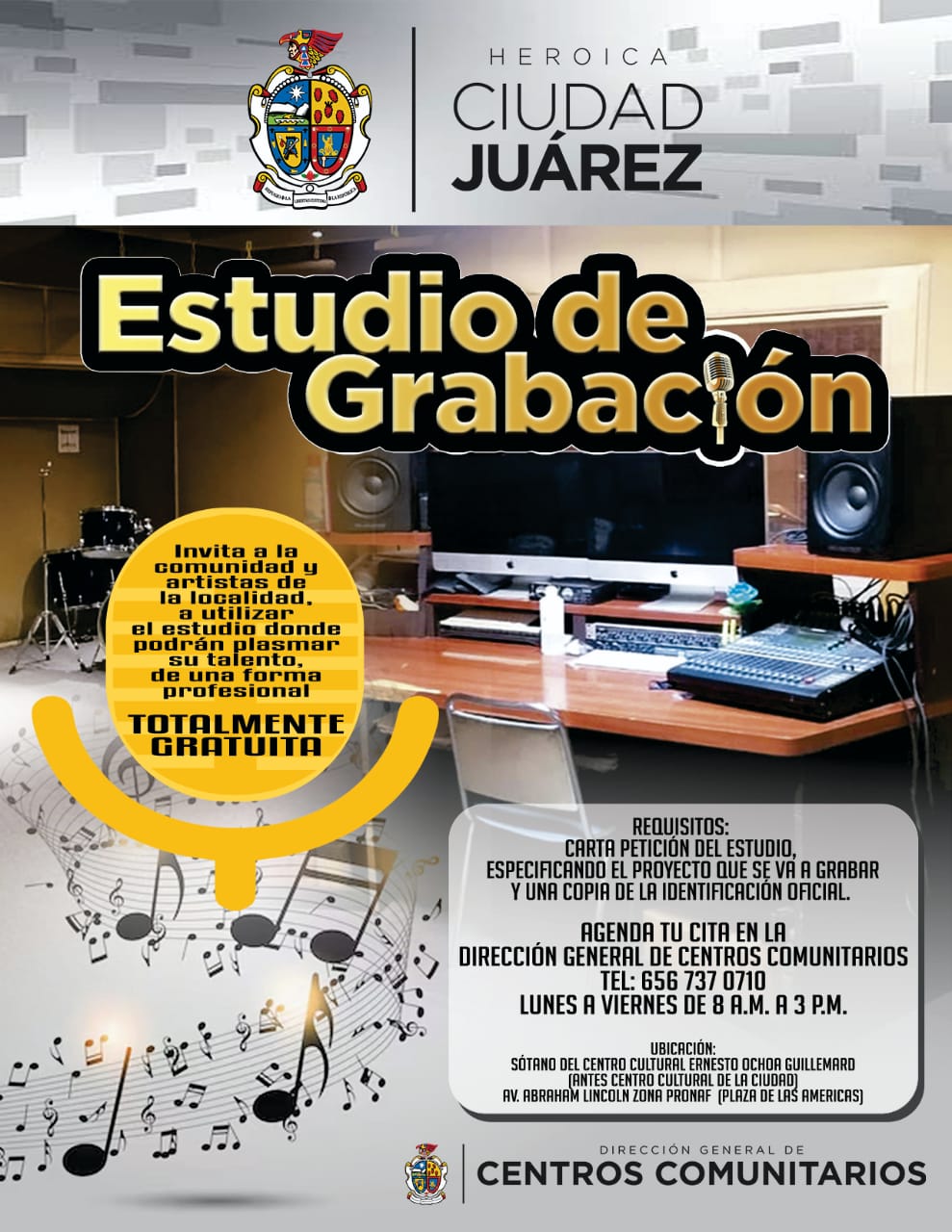 Leer másCiudad Juárez.- Con el objetivo de contribuir en el desarrollo de eventos culturales, educativos y artísticos, la Dirección General de Centros Comunitarios dispone de un estudio de grabación. Artistas de la localidad, docentes y grupos de teatro, entre otros, pueden hacer uso de este espacio, el cual se localiza en el sótano del Centro Cultural Ernesto Ochoa Guillemard, situado en la Zona Pronaf. El horario de atención es de lunes a viernes ...