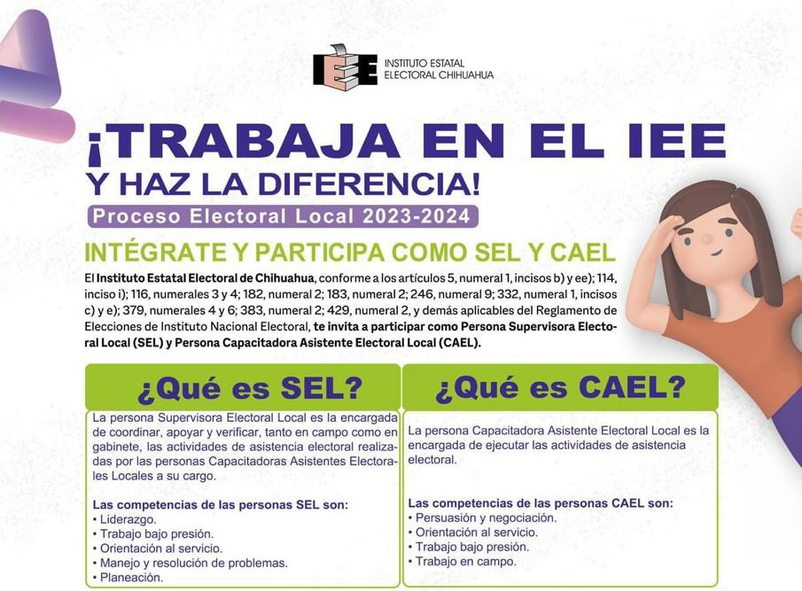 Leer másChihuahua, Chih.- Durante su 3a. Sesión Ordinaria, con la votación unánime del Consejo Estatal del Instituto Estatal Electoral (IEE) de Chihuahua, se aprobó y emitió la convocatoria para la contratación de personas Supervisoras Electorales Locales (SEL) y Capacitadoras Asistentes Electorales Locales (CAEL) para el Proceso Electoral Local 2023-2024. Una persona Supervisora Electoral Local se encarga de coordinar, apoyar y verificar, tanto en campo como en gabinete las actividades electorales realizadas por ...