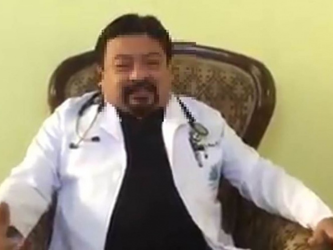 Medios locales difundieron en redes sociales un video donde el detenido, ataviado con bata de médico y un estetoscopio, anunciaba una jornada de vacunación en Chisec contra el nuevo coronavirus.