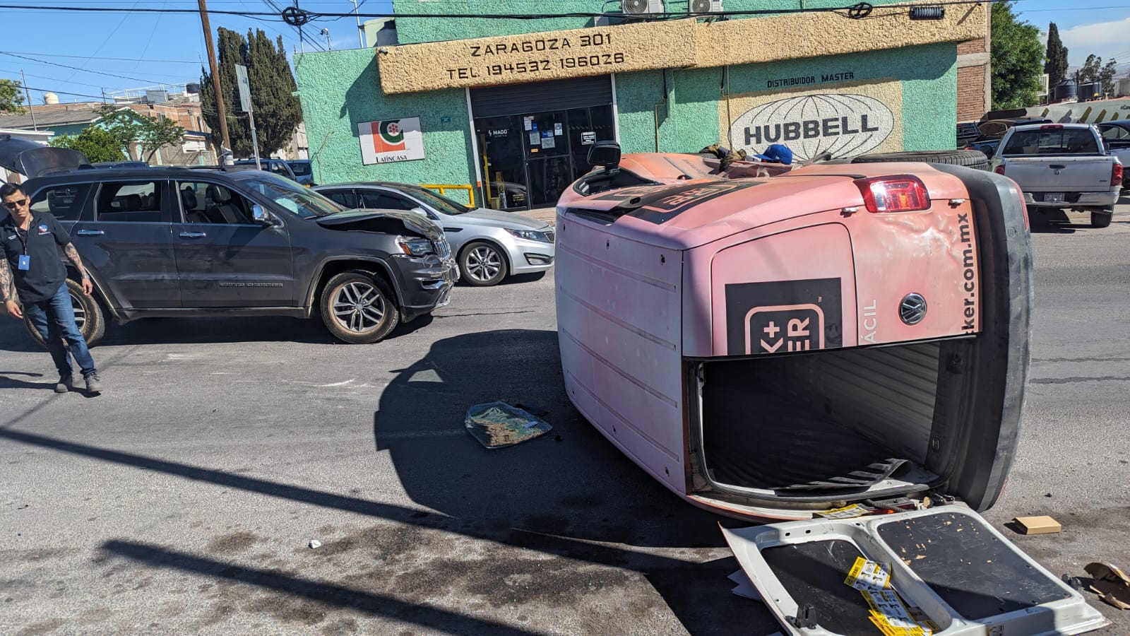 Chihuahua.- Tome sus precauciones ya que en la avenida Zaragoza, cruce con Manuel González Cosío, ocurrió un choque con volcadura lo que generó caos vehicular.