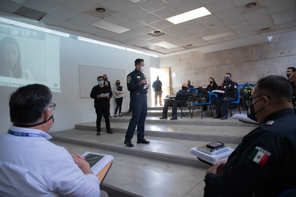 El total de policías inscritos es de 27 policías que fueron divididos en tres grupos, conforme a la metodología del curso y entre los temas que se les impartirán destacan: la colaboración policial y comunitaria, solución de problemas, mediación y justicia procedimental para mejorar las herramientas de interacción con la ciudadanía, implementación del modelo de colaboración con la población mediante juntas vecinales que oriente las estrategias de operación hacia las problemáticas comunitarias, dicho curso se impartirá vía Zoom desde la Escuela de Policía.
