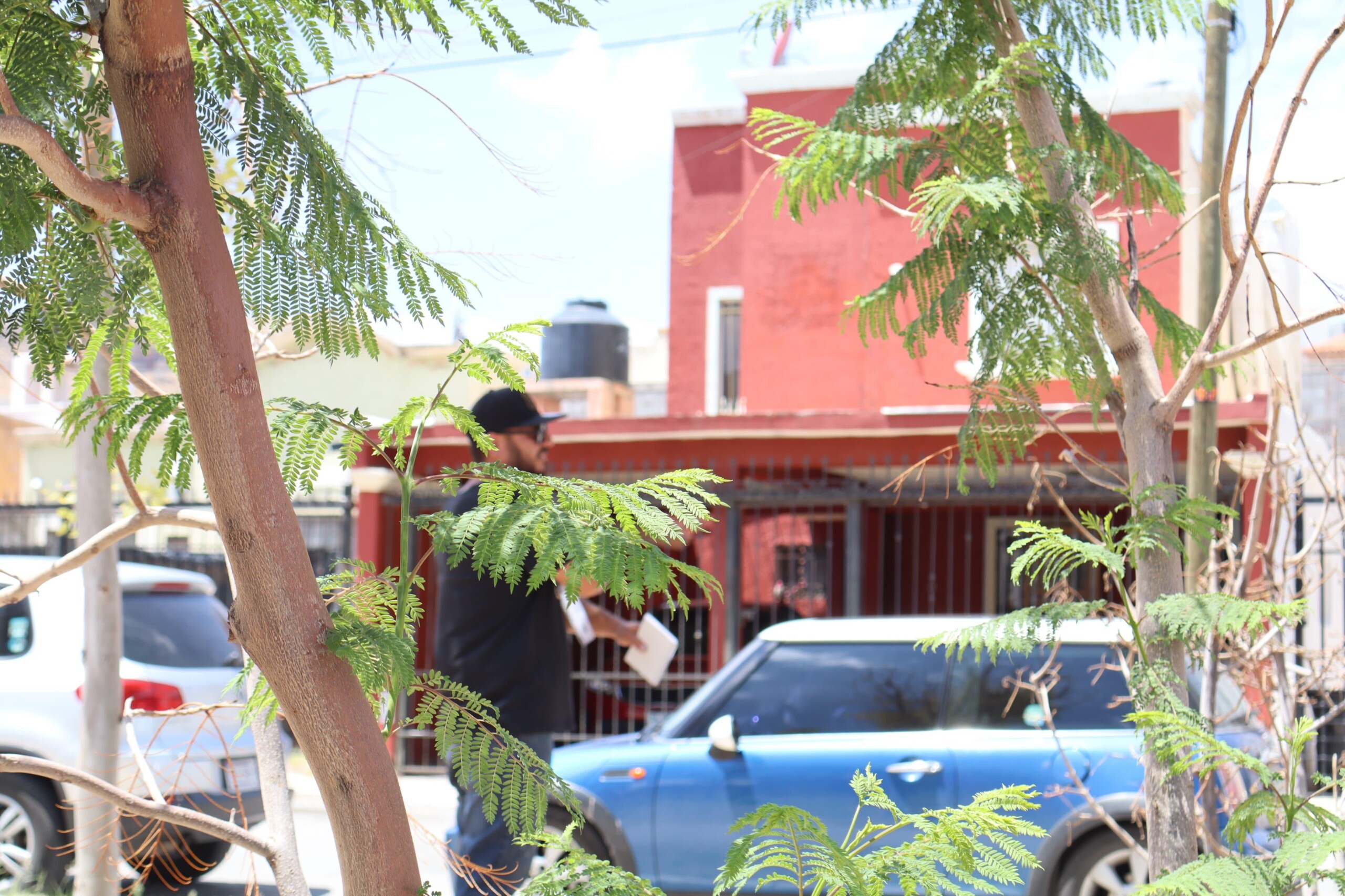 De acuerdo a la denuncia expuesta por varios electores, el ciudadano tiene tiempo vigilando desde las afueras la casilla, y mediante una libreta, realiza algún tipo de anotación.
