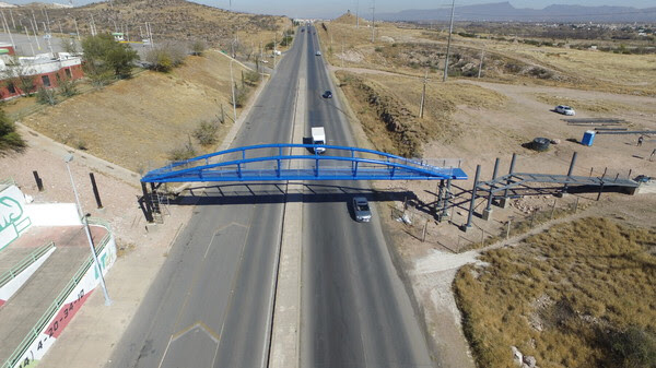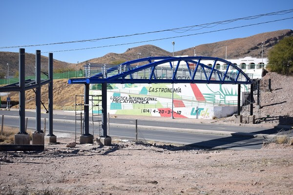 Casi listo puente peatonal sobre la carretera Aldama-Chihuahua