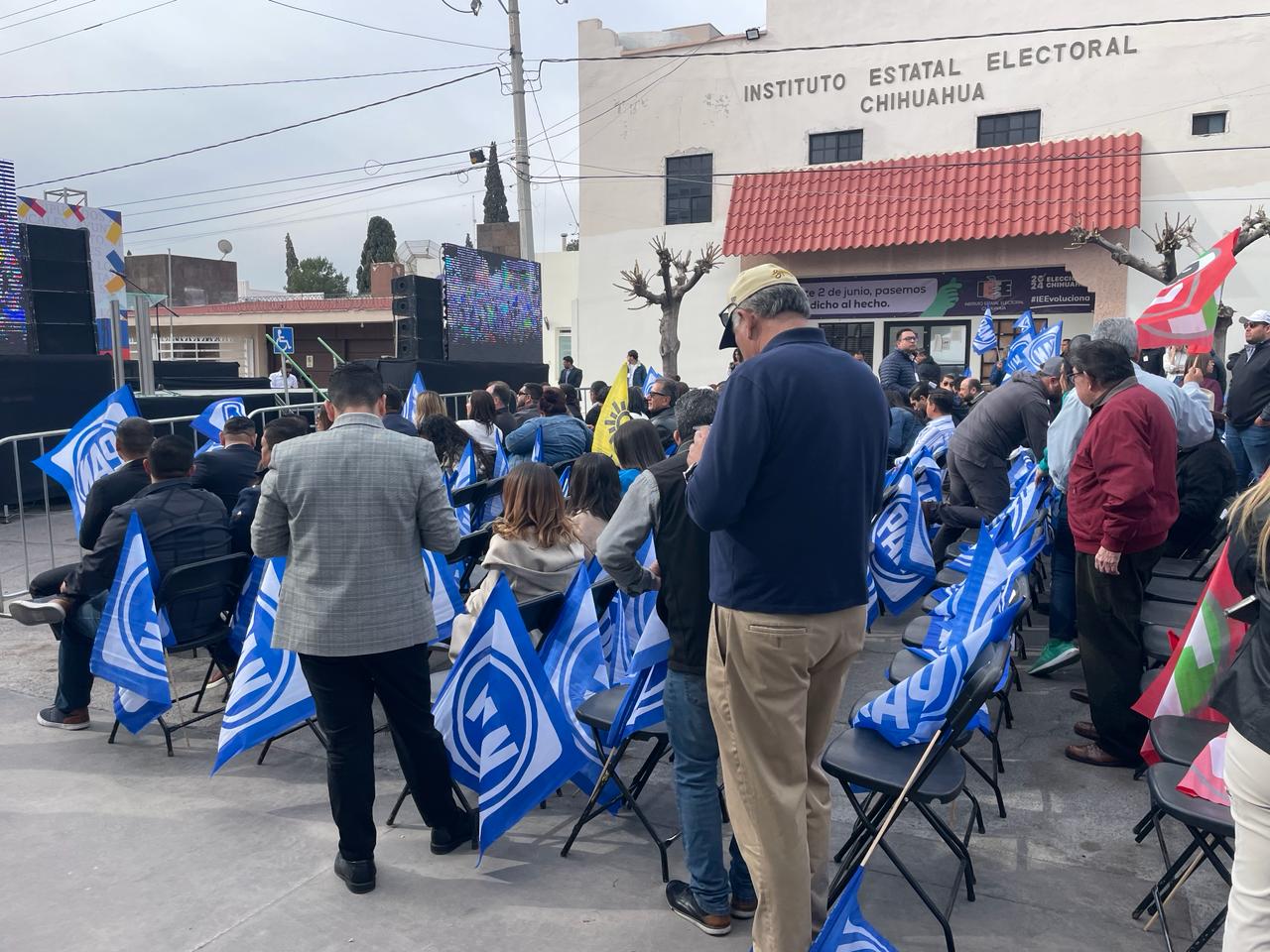 Leer másChihuahua.- Simpatizantes del PAN, PRI y PRD arribaron al exterior del Instituto Estatal Electoral a fin de acompañar a los aspirantes a contender a un cargo de elección local que presentan hoy su registro para ser oficiales candidatos por la Alianza Juntos Defendamos a Chihuahua. Para la alcaldía se registró Marco Bonilla, quien busca la reelección, mientras que para la sindicatura será Olivia Franco, que también va por su segundo periodo. Mientras ...