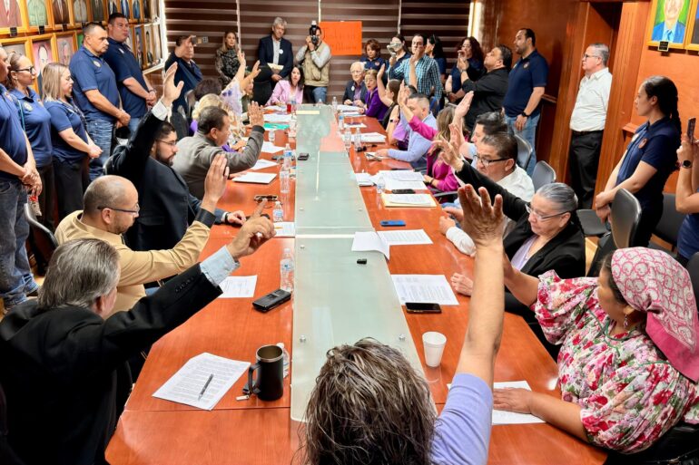 Cuauhtémoc.- El alcalde Beto Pérez agradeció el respaldo del Sindicato de Trabajadores al Servicio del Municipio CTM, de los trabajadores sindicalizados y personal de confianza que se hicieron presentes durante al aprobación por parte del Honorable Ayuntamiento de Cuauhtémoc, de un acuerdo para el pago de $52 millones de pesos a Infonavit, con lo que se resuelve un problema que databa desde 2008, que impedía a los trabajadores acceder a ...