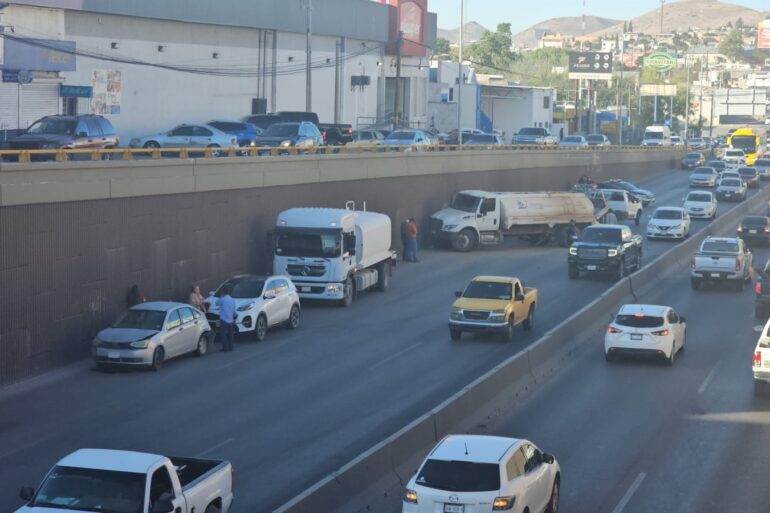 Leer másChihuahua.- El conductor de una pipa de la Junta Municipal de Agua y Saneamiento (JMAS) causó un aparatoso accidente que involucró a cinco vehículos sobre la avenida Silvestre Terrazas, justo unos metros antes de llegar al Circuito Tricentenario. El accidente ocurrió debido al tráfico que se generó en el sector desde temprana hora de este martes 24 de marzo, principalmente por automovilistas que buscan incorporarse hacía el Periférico de la Juventud, ...