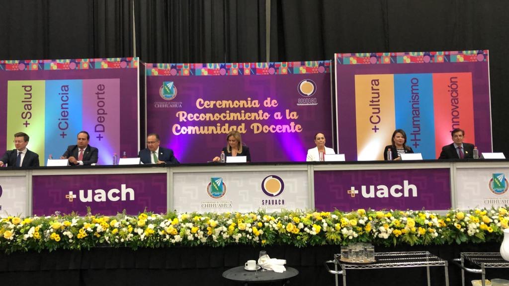 Leer másChihuahua.- La Universidad Autónoma de Chihuahua reconoció a maestras y maestros con una antigüedad de 50 años de servicio en el marco de la celebración por su día, en un evento que se le denominó "Reconocimientos a la comunidad docente", que tuvo lugar la mañana de este lunes 15 de mayo. La ceremonia fue encabezada por la gobernadora Maru Campos Galván, quien acompañó al rector de la Máxima Casa de Estudios, ...