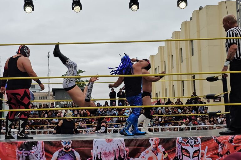 Leer másChihuahua.- La Plaza de Armas lució llena de aficionados de la Lucha Libre la tarde del domingo por la función que se realizó y que contó con la participación de luchadorres como Octagón Jr, Pagano, Pimpinela Escarlata y Abismo Negro JR. El cuadrilátero de lucha quedó ubicado frente a la presidencia municipal y, en sus alrededores, cientos de sillas para los asistentes y sus familiares que tuvieron la oportunidad de disfrutar ...